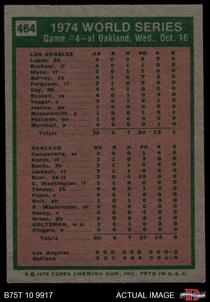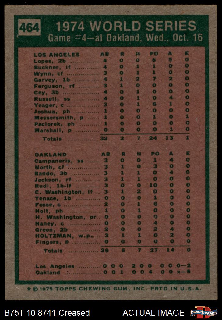 1975 Topps #464 - Ken Holtzman / Steve Yeager 1974 World Series - Game #4 3 - VG
