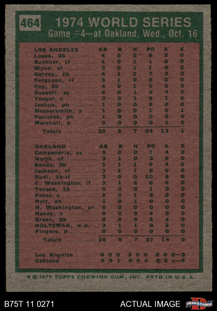 1975 Topps #464 - Ken Holtzman / Steve Yeager 1974 World Series - Game #4 4.5 - VG/EX+