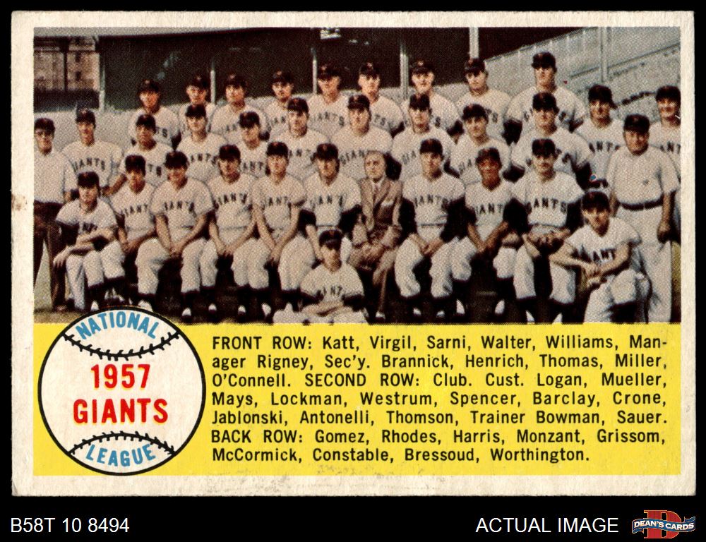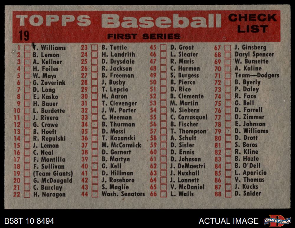 1958 Topps #19 Giants Team Checklist 4 - VG/EX