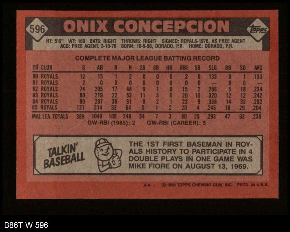 1986 Topps Baseball Cards (6,195 available)1986 Topps Royals (207 available)
