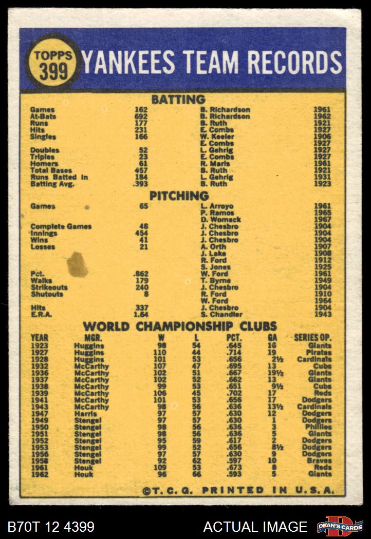 1970 Topps #399 Yankees Team 4 - VG/EX