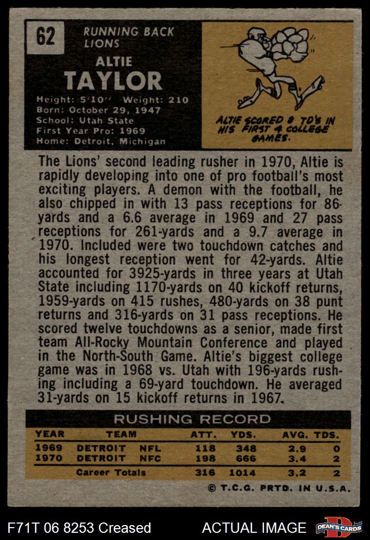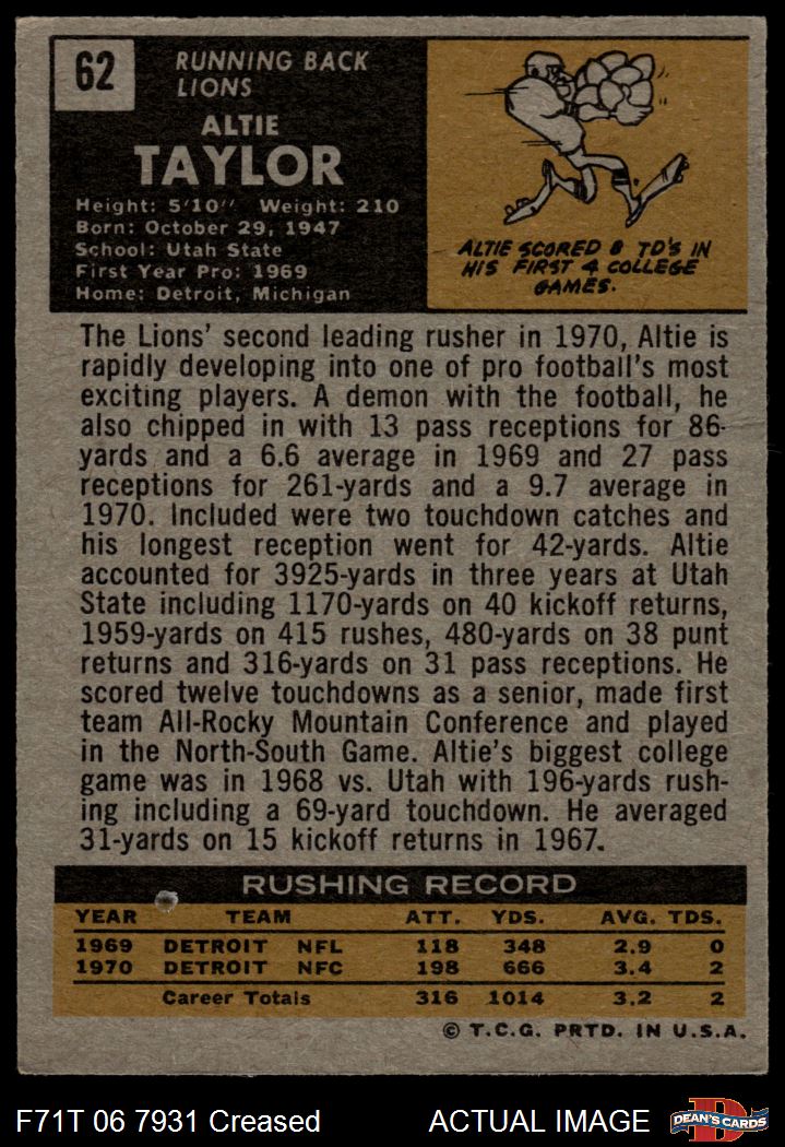 1971 Topps #62 Altie Taylor 3 - VG