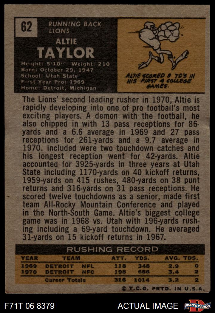 1971 Topps #62 Altie Taylor Front Thumbnail