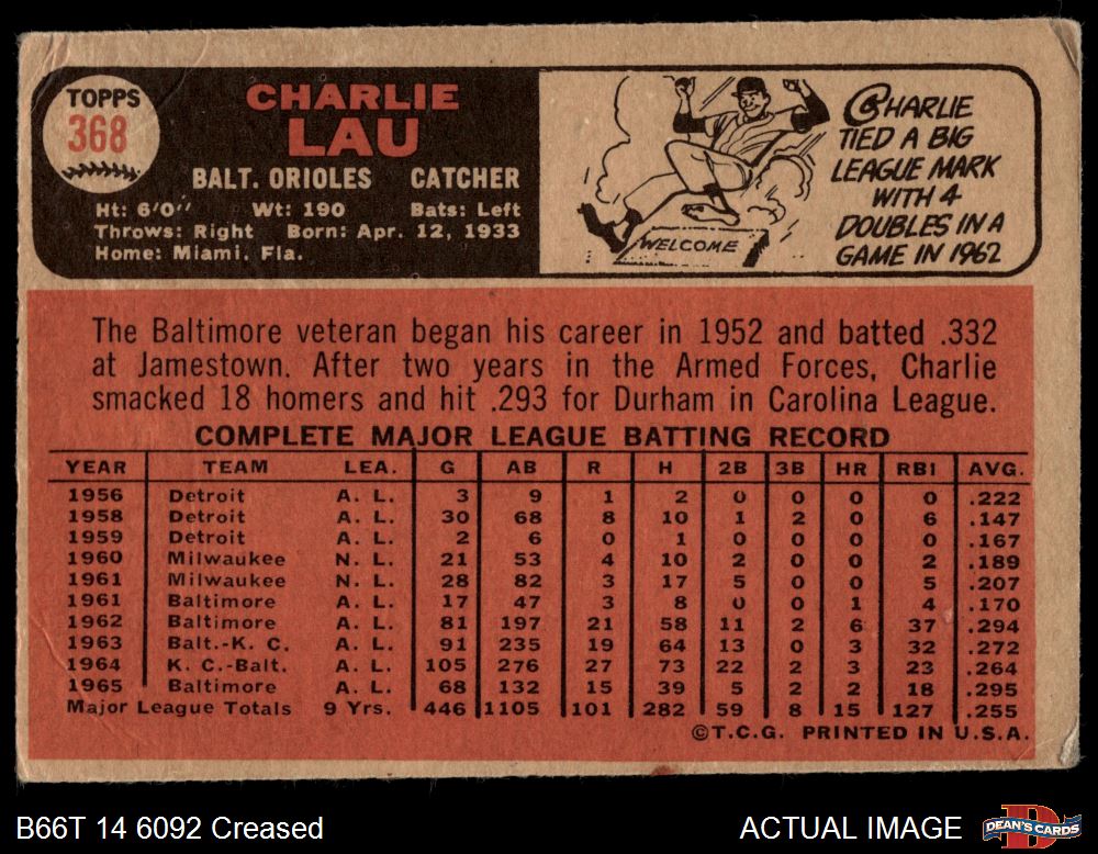 1966 Topps #368 Charlie Lau 1 - POOR