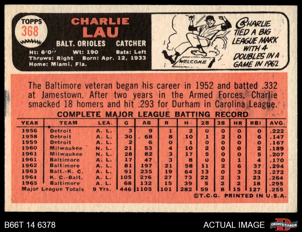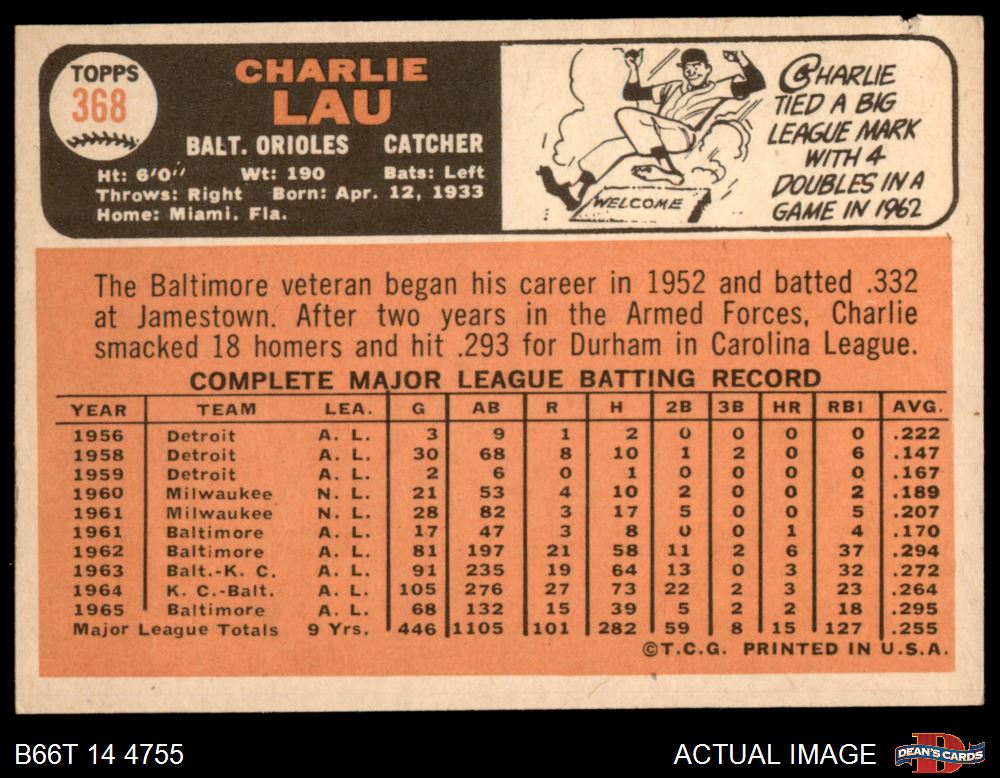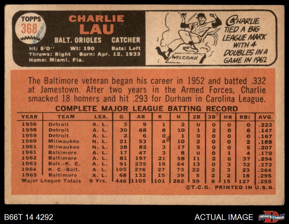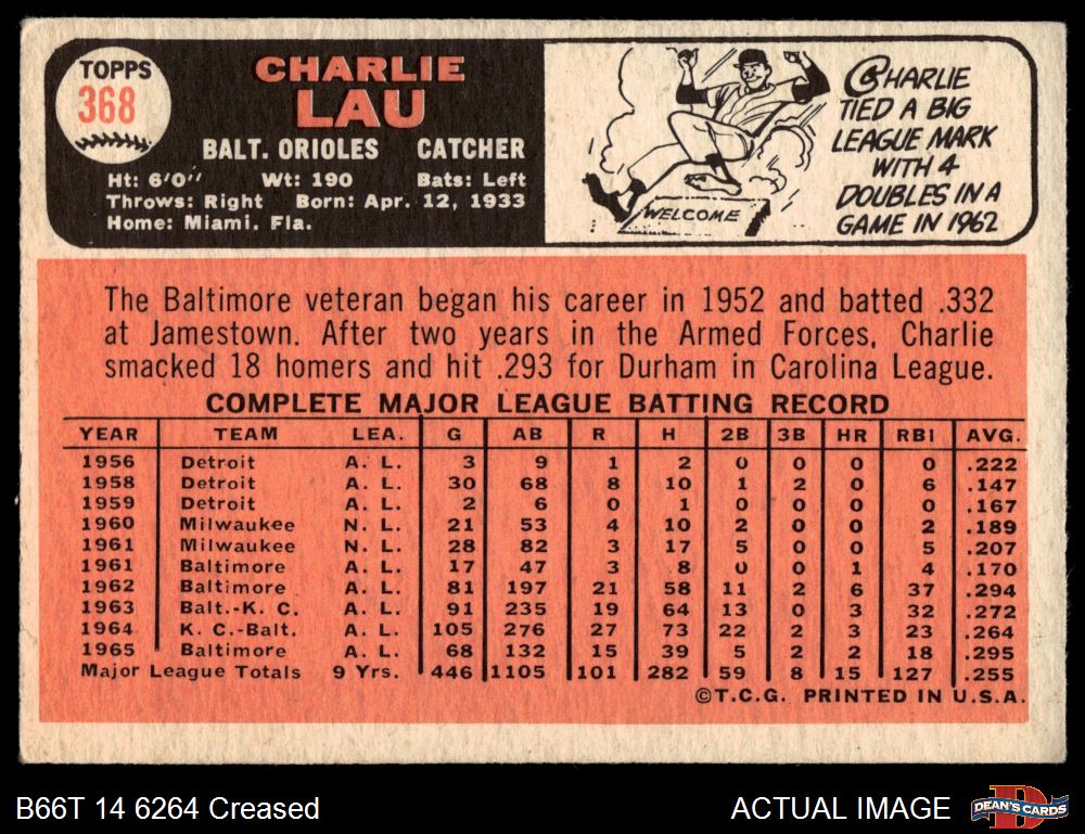 1966 Topps #368 Charlie Lau 2 - GOOD