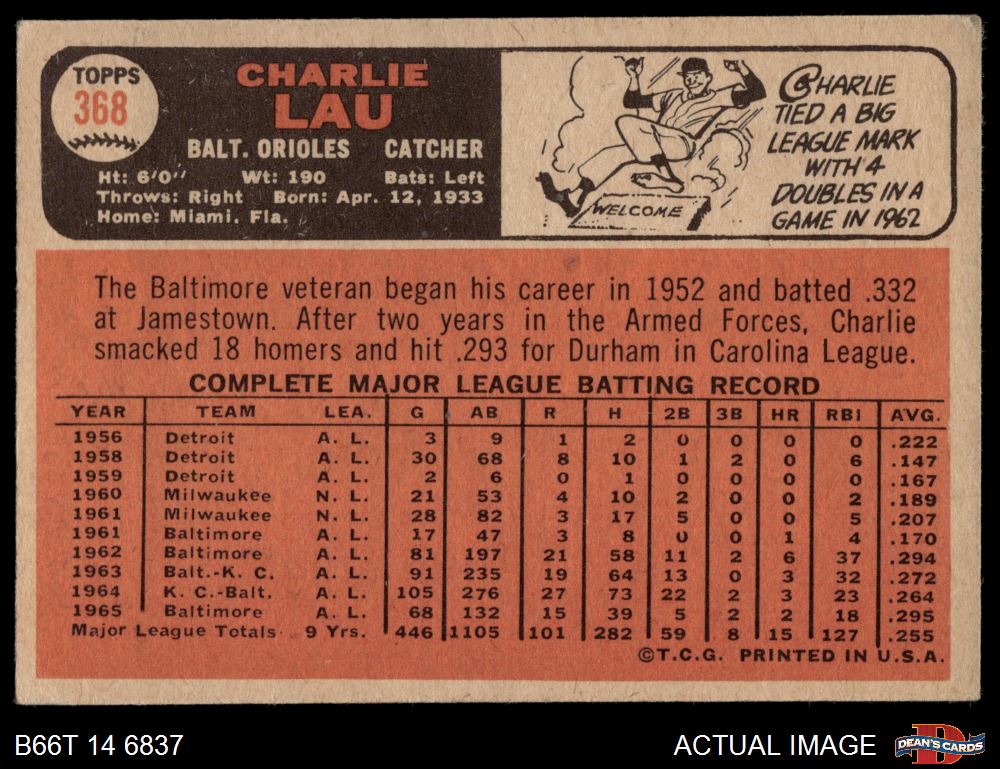 1966 Topps #368 Charlie Lau 3 - VG
