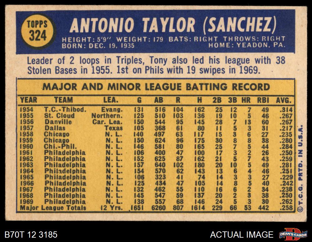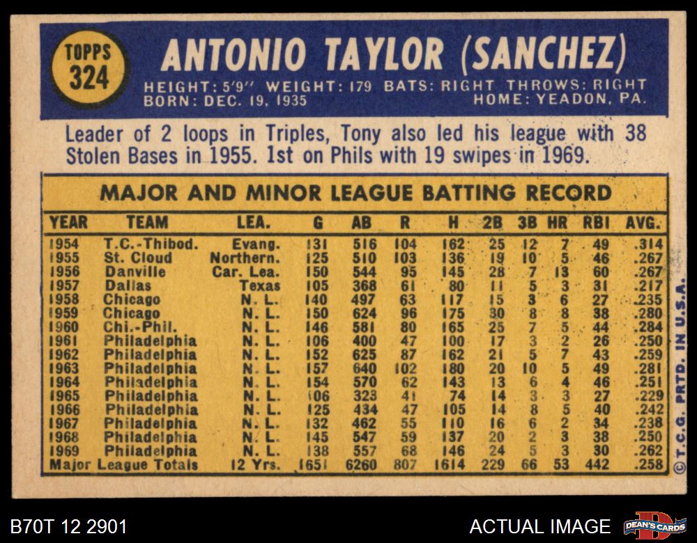 1970 Topps #324 Tony Taylor