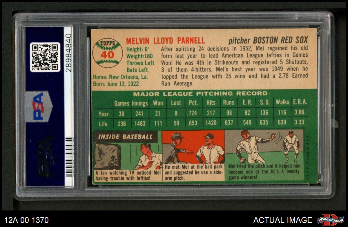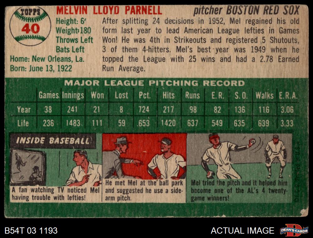 1954 Topps #40 WHT Mel Parnell