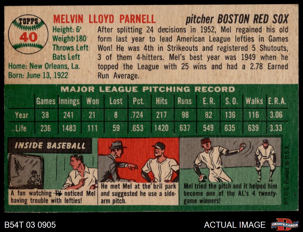1954 Topps #40 WHT Mel Parnell 4.5 - VG/EX+