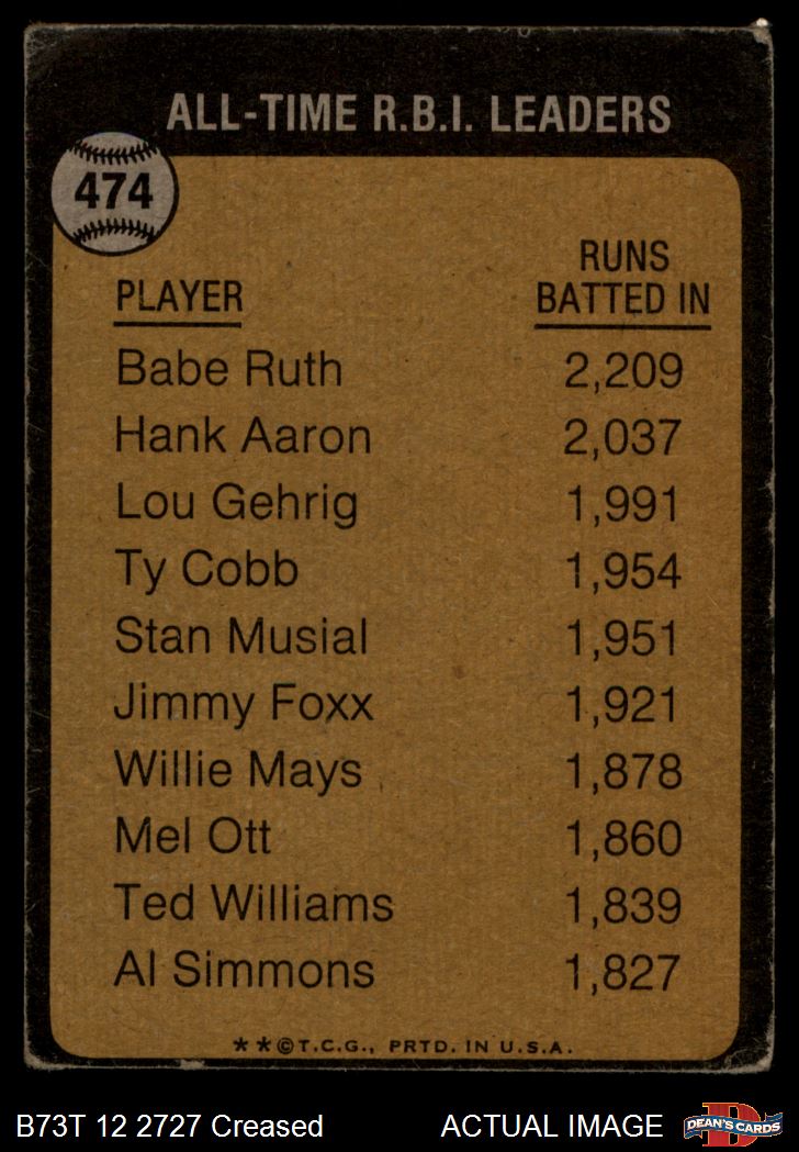 1973 Topps #474 - Babe Ruth All-Time RBI Leader 1.5 - FAIR