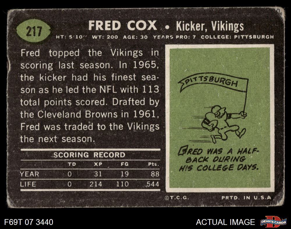 1969 Topps #217 Fred Cox 1 - POOR