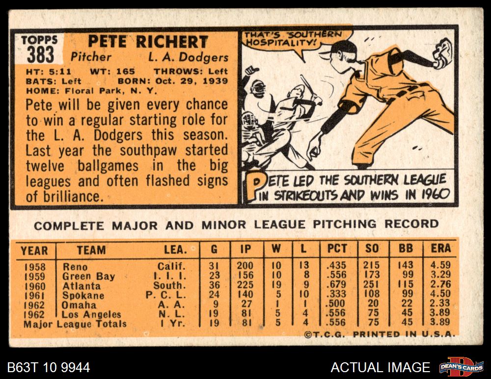 1963 Topps #383 Pete Richert 3 - VG