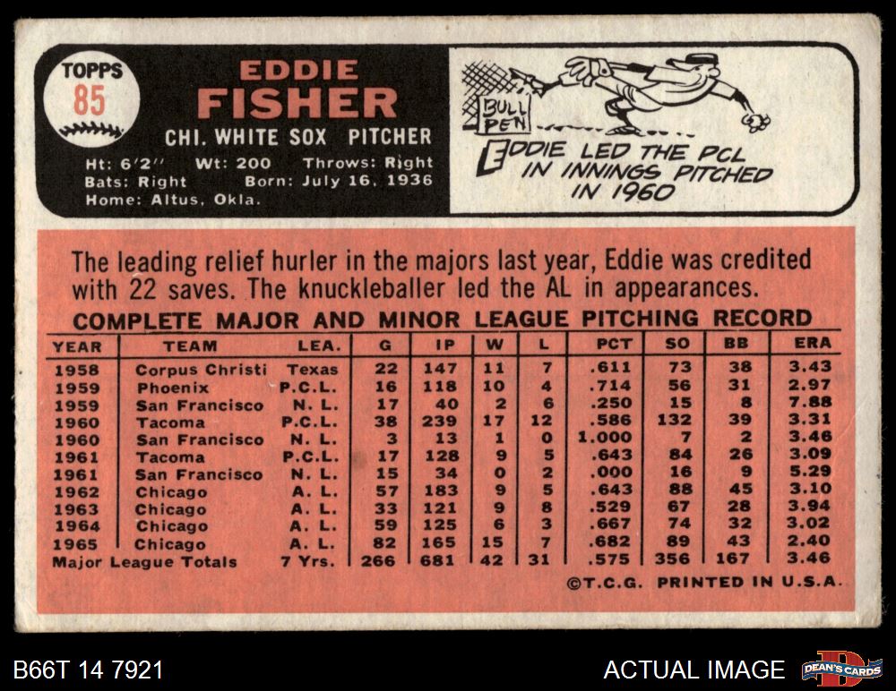 1966 Topps #85 Eddie Fisher 2 - GOOD