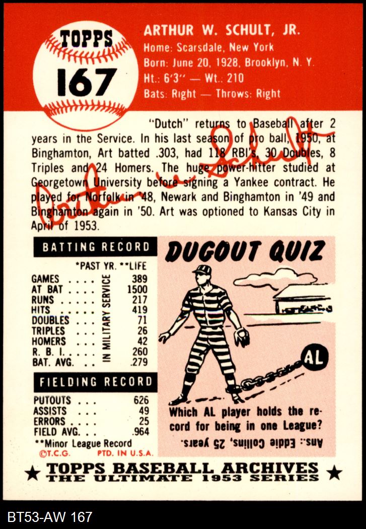 1953 Topps Archives #167 Art Schult 8 - NM/MT