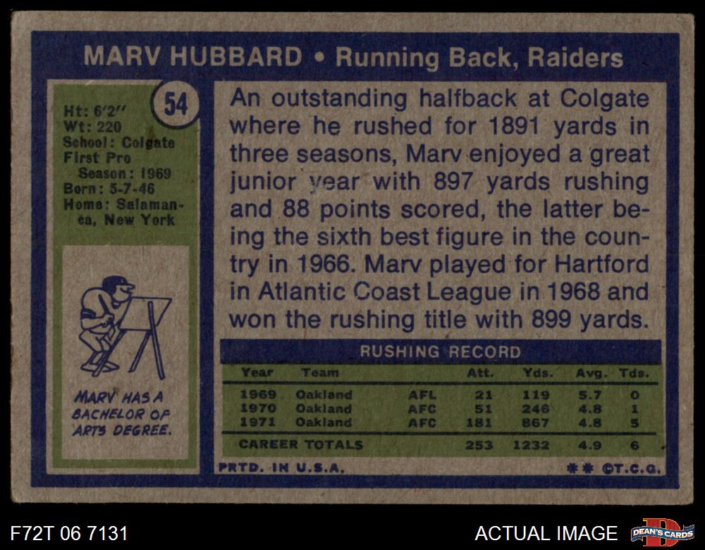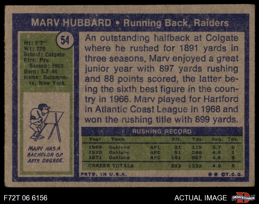 1972 Topps #54 Marv Hubbard 1.5 - FAIR
