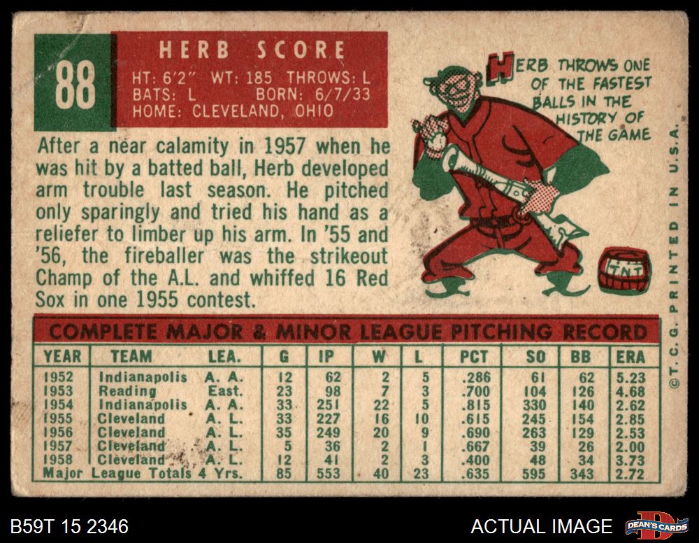 1959 Topps #88 Herb Score 1 - POOR