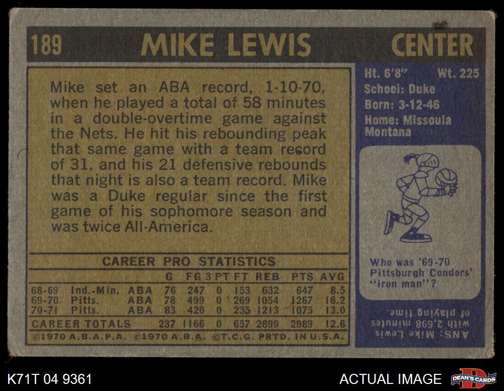 1971 Topps #189 Mike Lewis 3 - VG