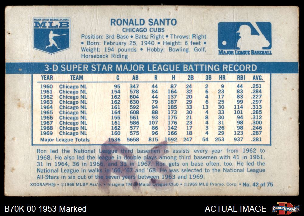 1970 Kellogg's #42 Ron Santo 1 - POOR