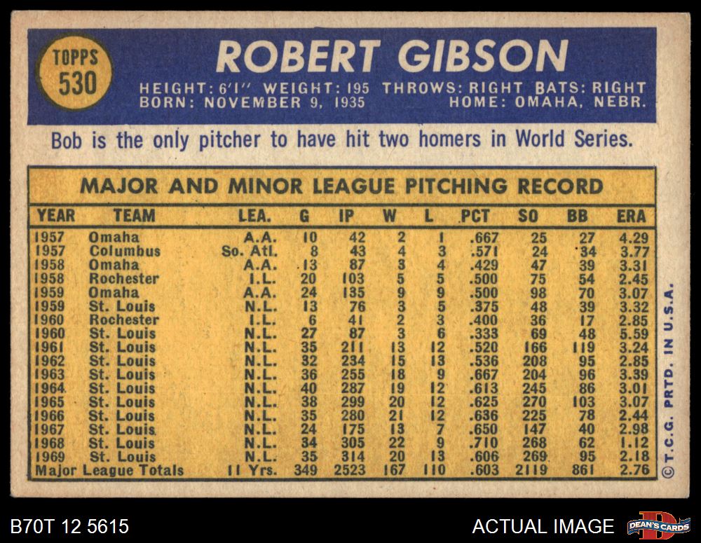 1970 Topps #530 Bob Gibson 5 - EX