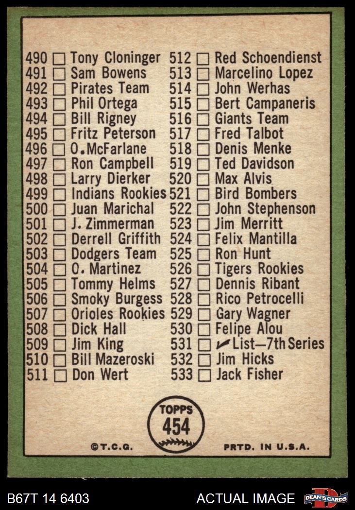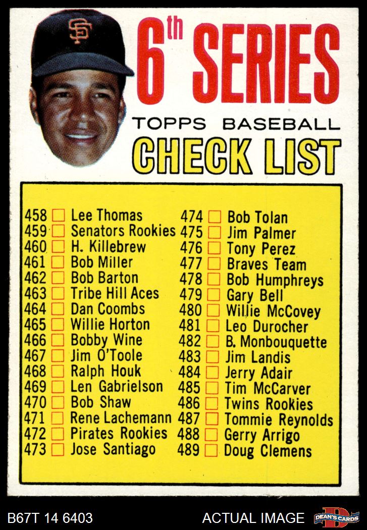 1967 Topps #454 TWO - Juan Marichal Checklist 6 7 - NM