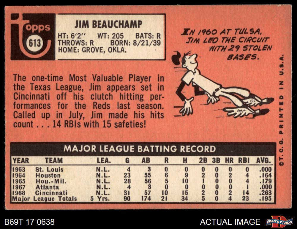 1969 Topps #613 Jim Beauchamp 4 - VG/EX