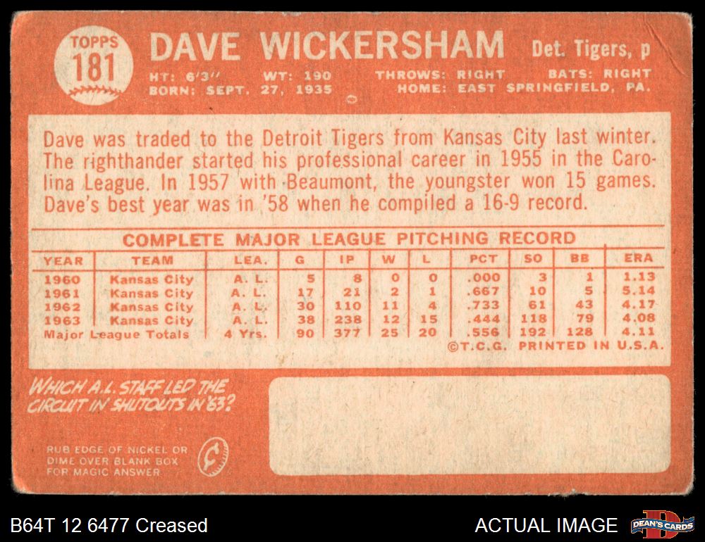 1964 Topps #181 Dave Wickersham 1 - POOR