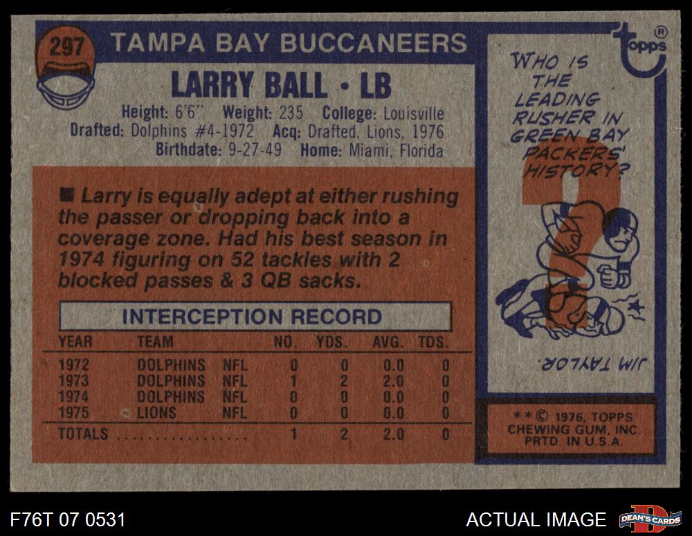 1976 Topps #297 Larry Ball 7 - NM