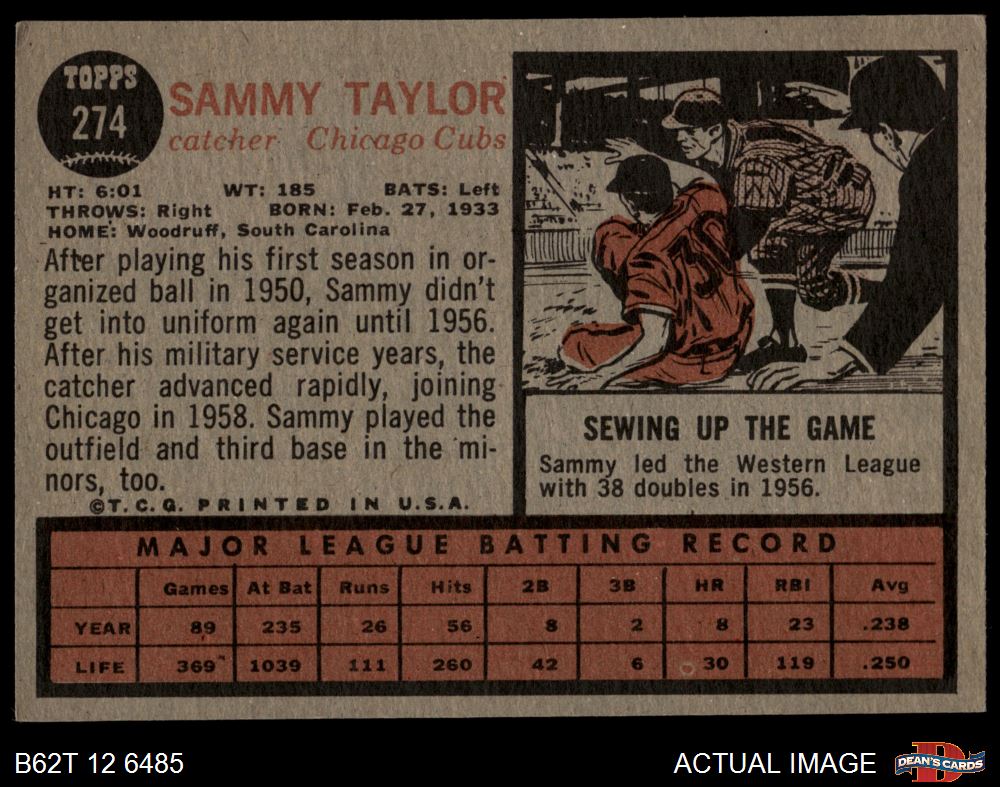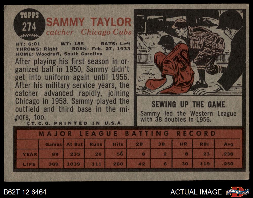 1962 Topps #274 Sammy Taylor 3 - VG