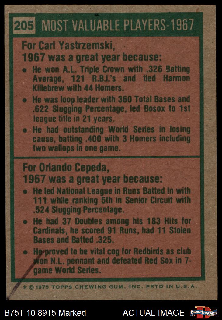 1975 Topps #205 - Carl Yastrzemski / Orlando Cepeda 1967 MVPs 1.5 - FAIR