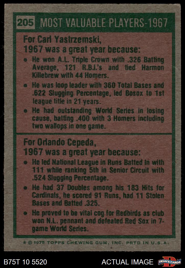 1975 Topps #205 - Carl Yastrzemski / Orlando Cepeda 1967 MVPs 3 - VG