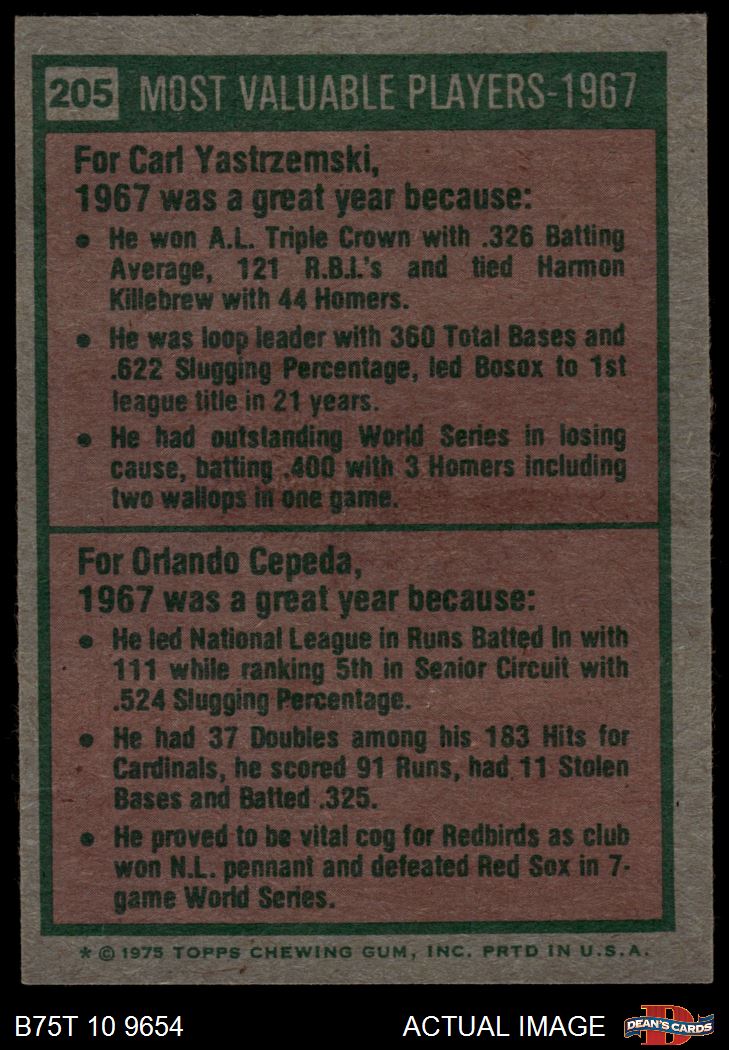 1975 Topps #205 - Carl Yastrzemski / Orlando Cepeda 1967 MVPs 7.5 - NM+