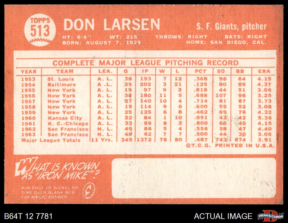 1964 Topps #513 Don Larsen