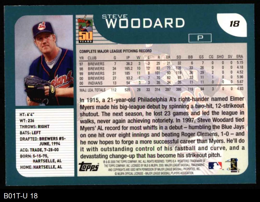 2001 Topps #18 Steve Woodard 8 - NM/MT