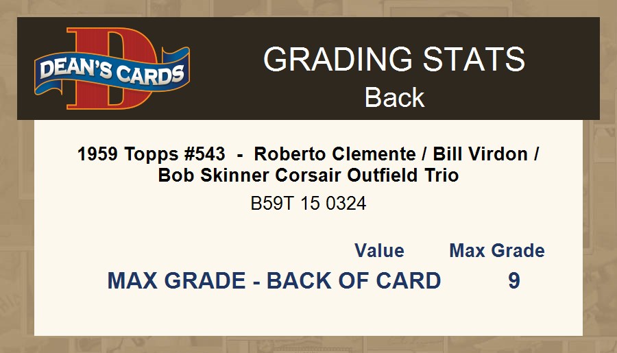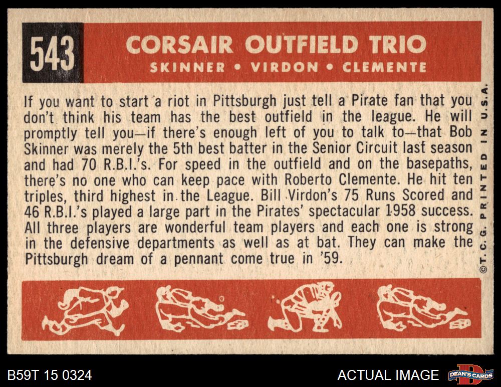 1959 Topps #543 - Roberto Clemente / Bill Virdon / Bob Skinner Corsair Outfield Trio 1 - POOR