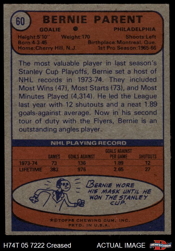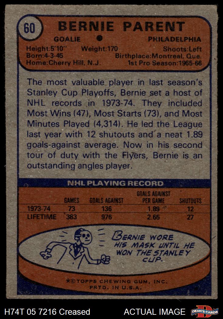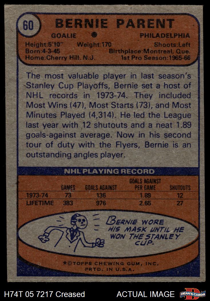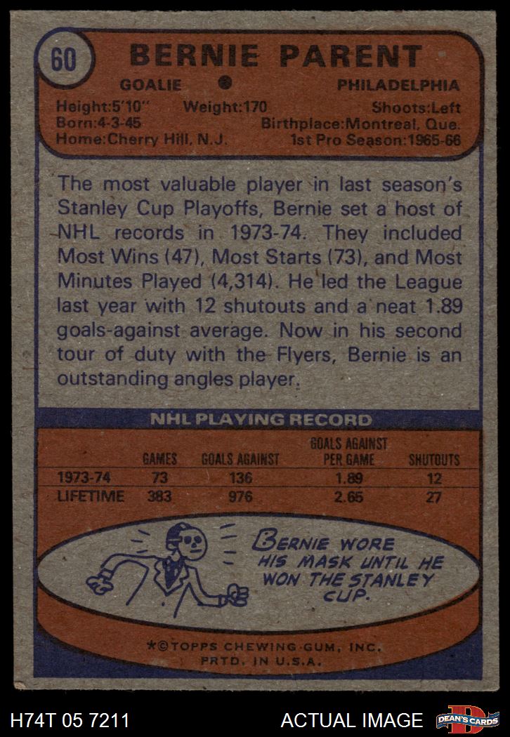 1974 Topps #60 Bernie Parent Front Thumbnail