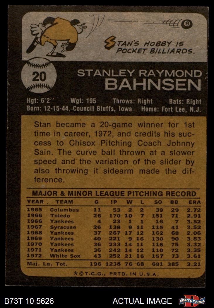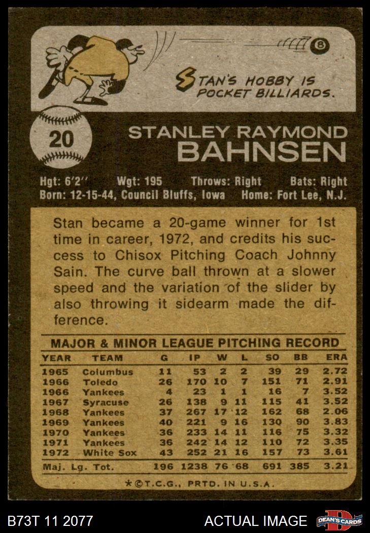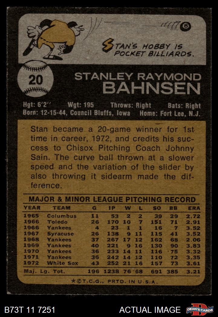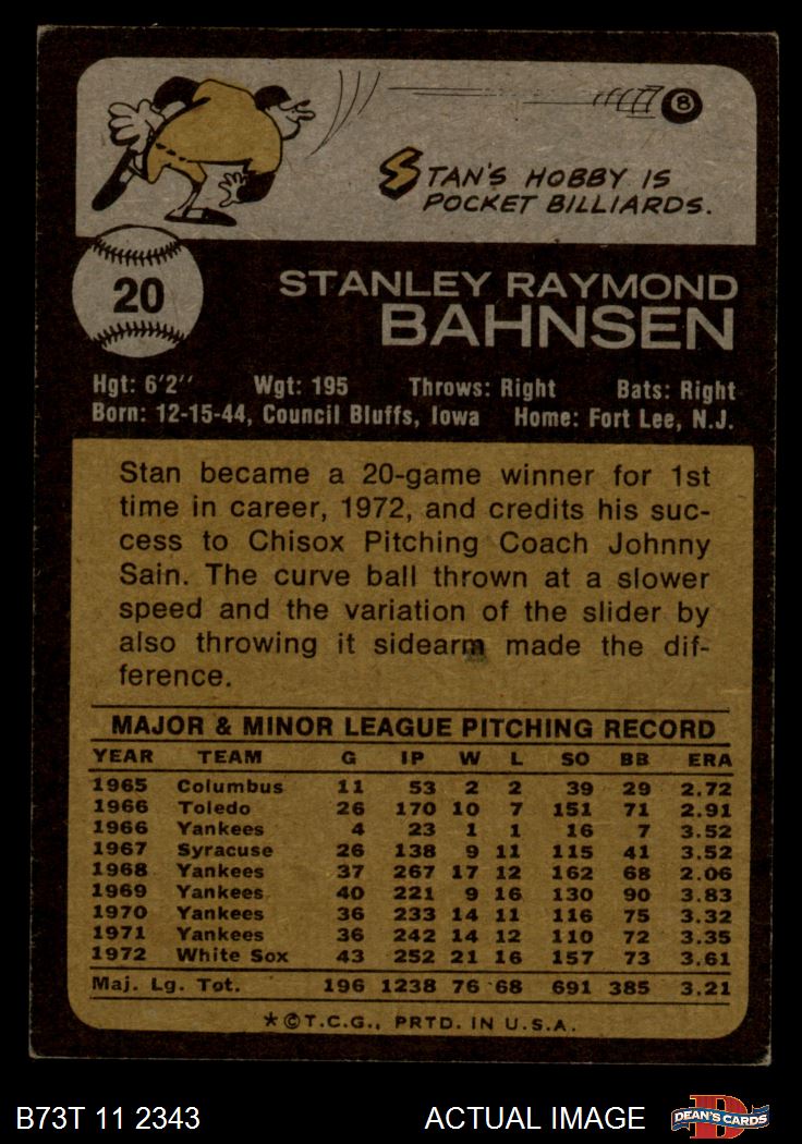 1973 Topps #20 xGAP Stan Bahnsen