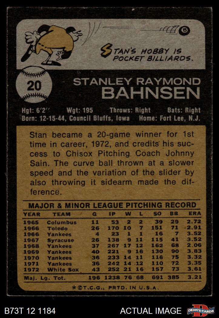 1973 Topps #20 xGAP Stan Bahnsen 5 - EX