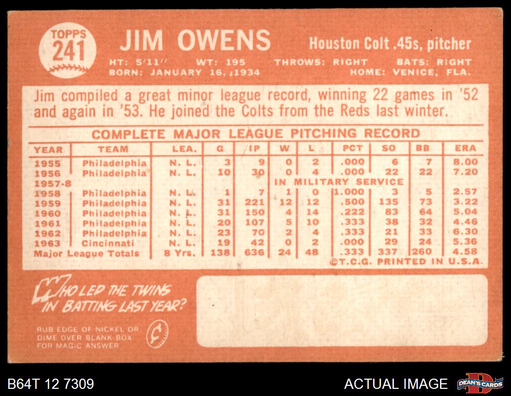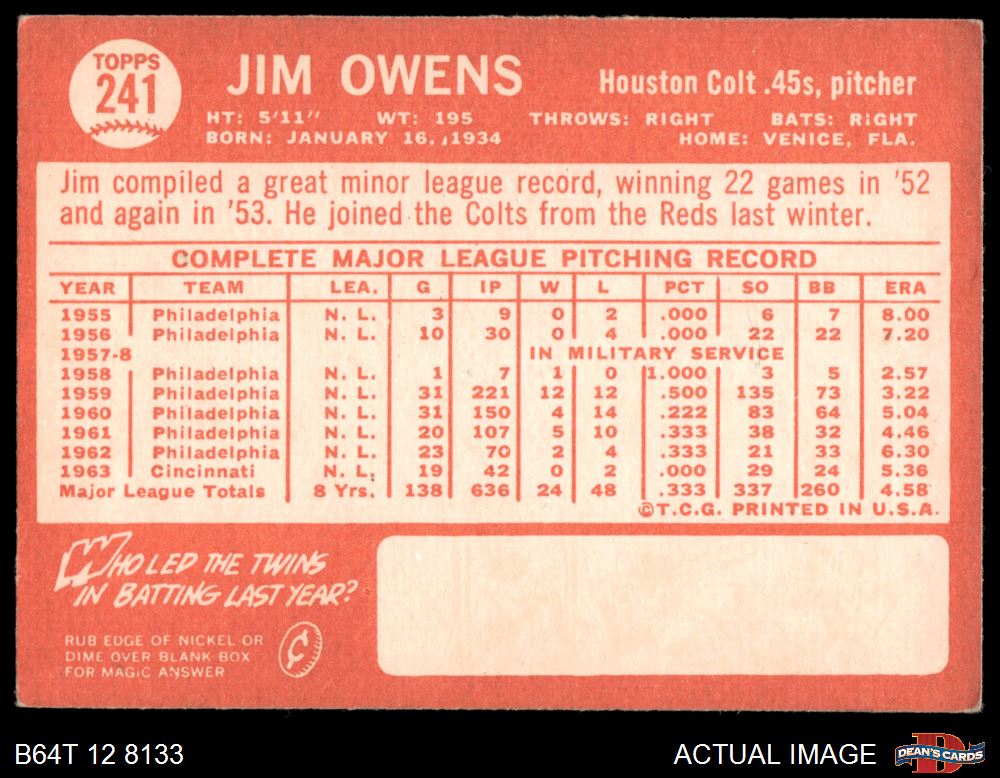 1964 Topps #241 Jim Owens 3.5 - VG+