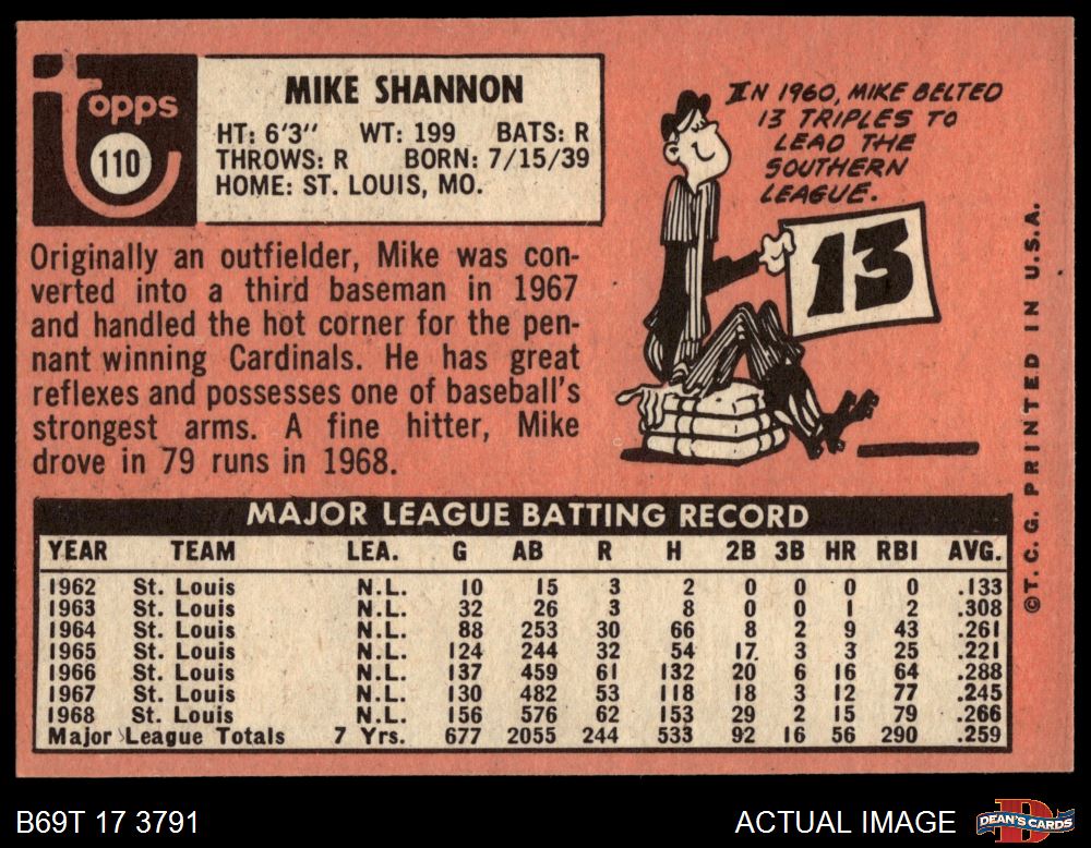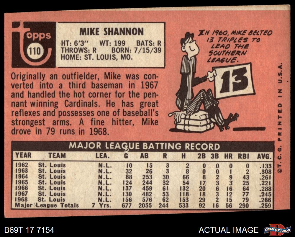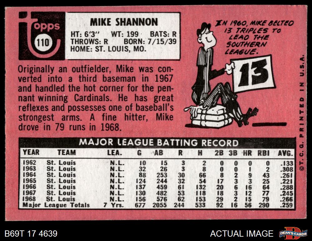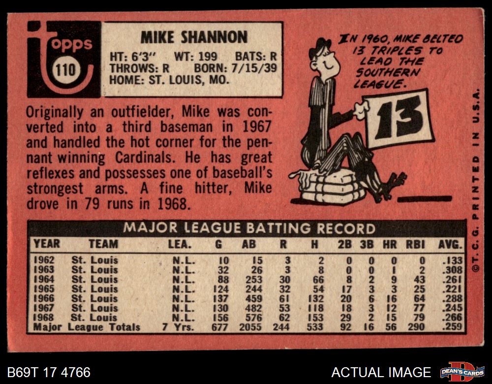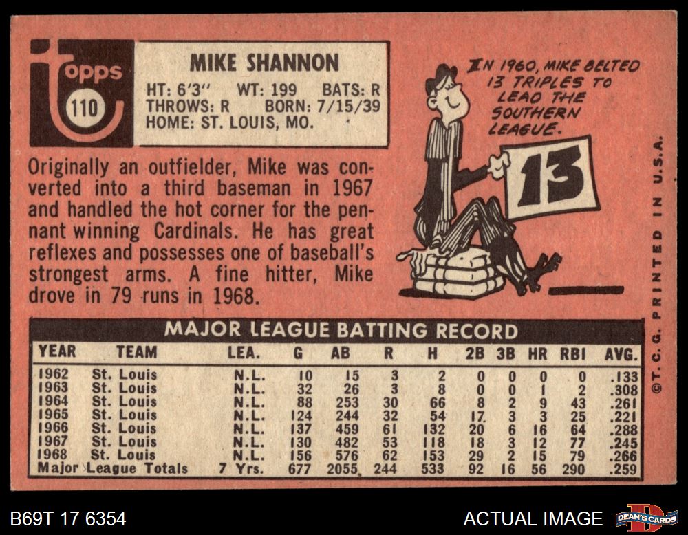 1969 Topps #110 Mike Shannon