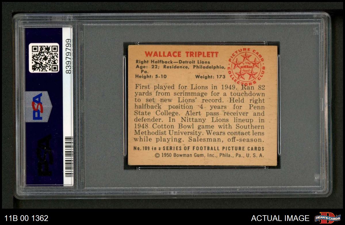 1950 Bowman #109 Wallace Triplett PSA 4 - VG/EX