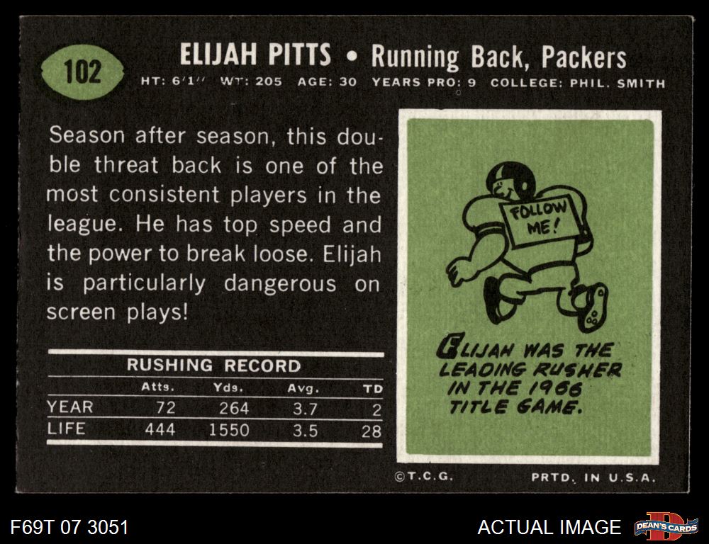 1969 Topps #102 Elijah Pitts 5 - EX