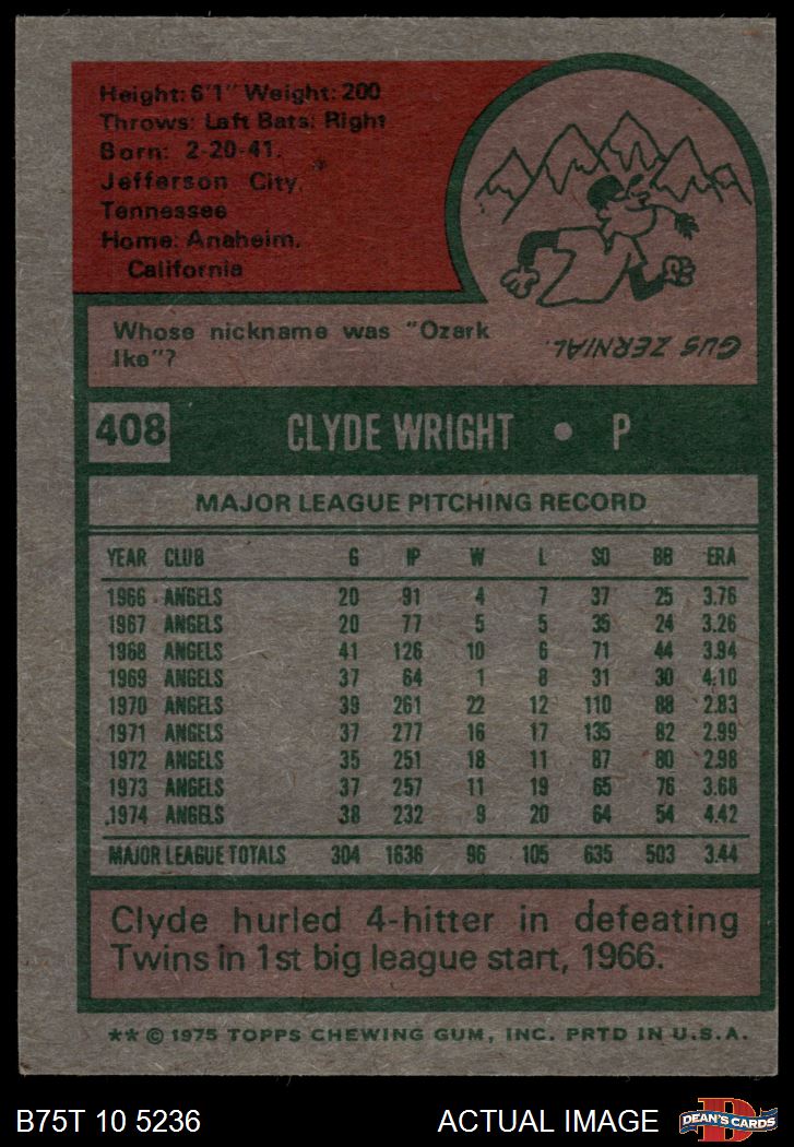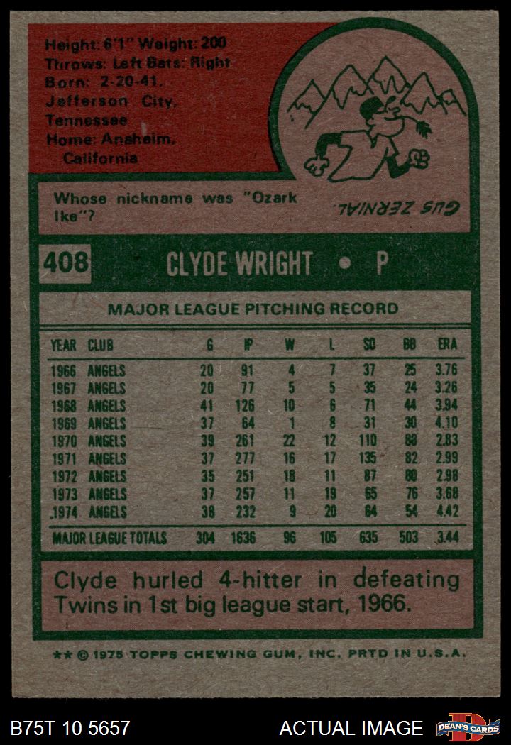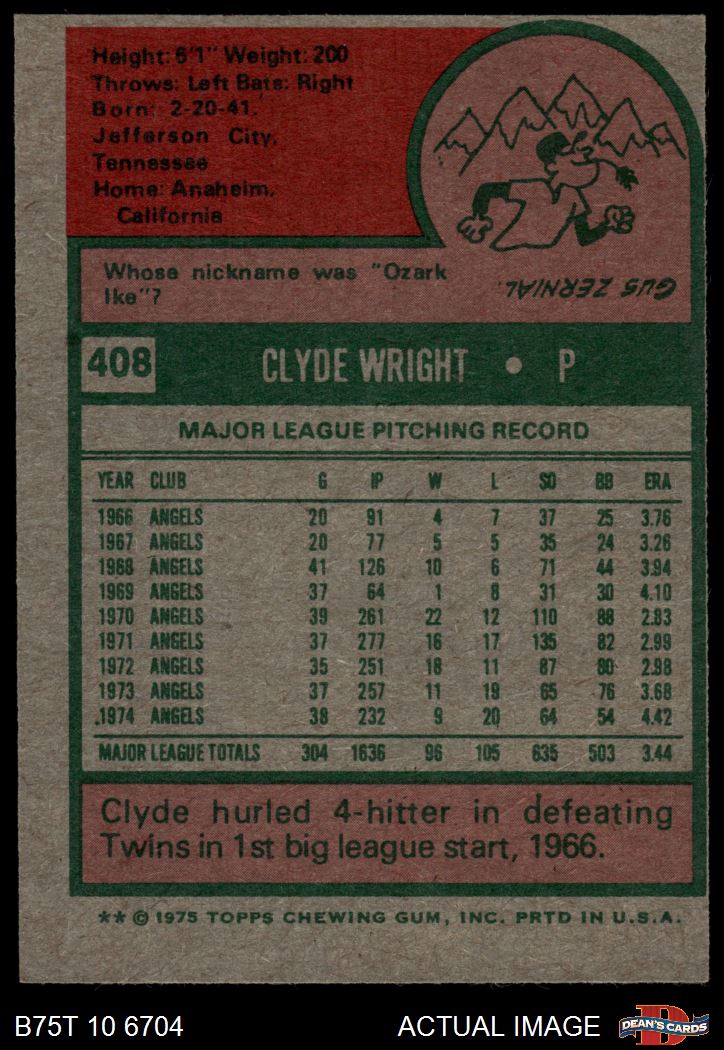 1975 Topps #408 Clyde Wright