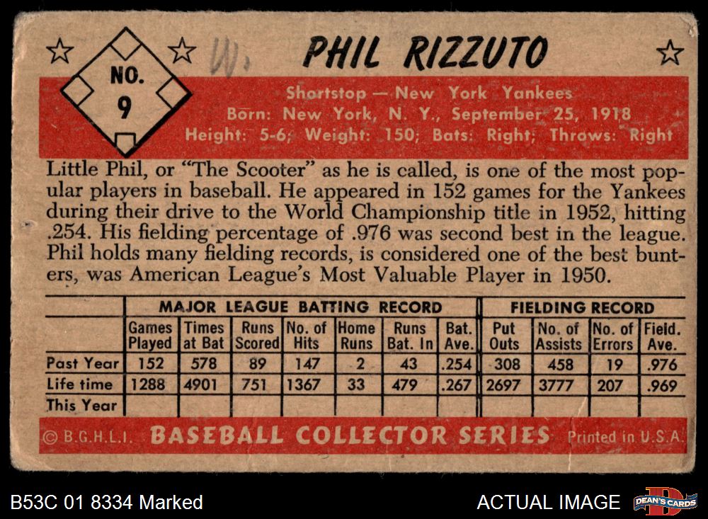 1953 Bowman #9 Phil Rizzuto 1 - POOR