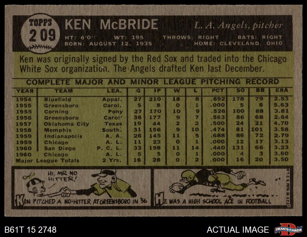 1961 Topps #209 Ken McBride 6.5 - EX/MT+