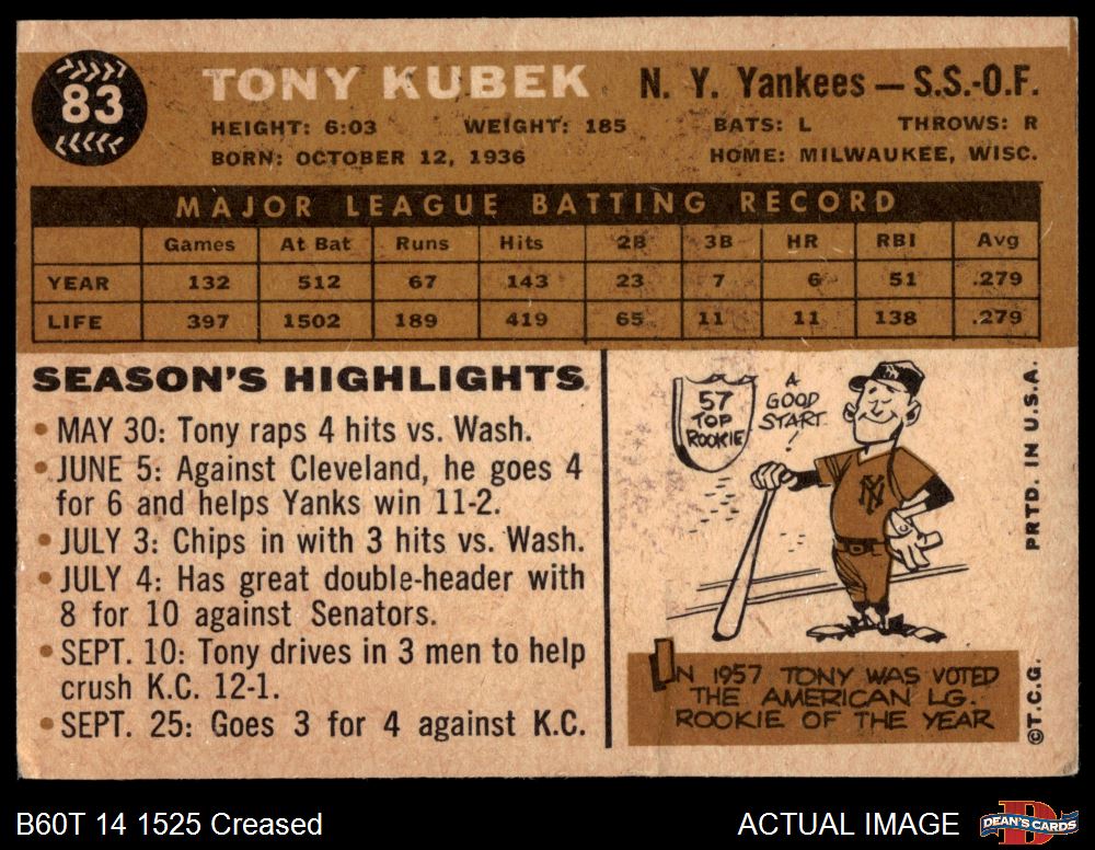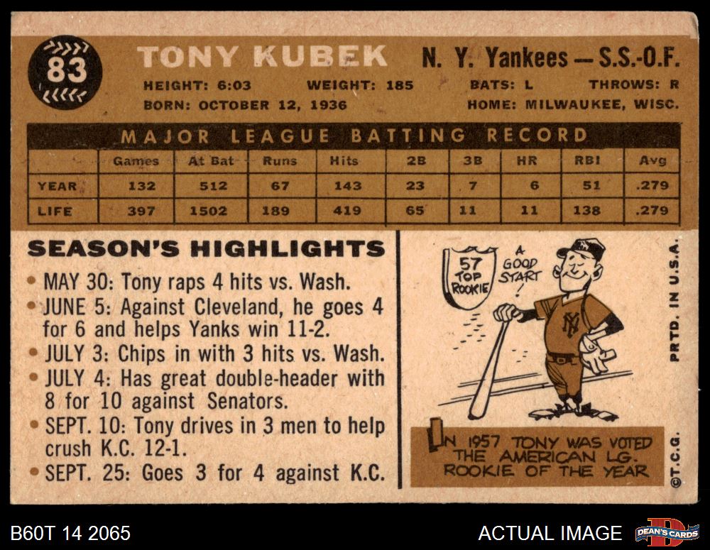 1960 Topps #83 Tony Kubek 2 - GOOD