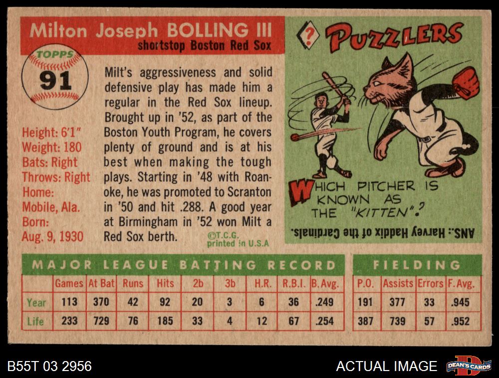 1955 Topps #91 Milt Bolling