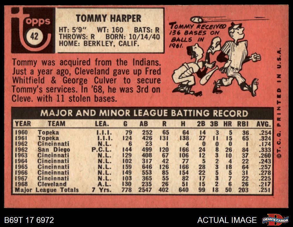 1969 Topps #42 Tommy Harper 4 - VG/EX