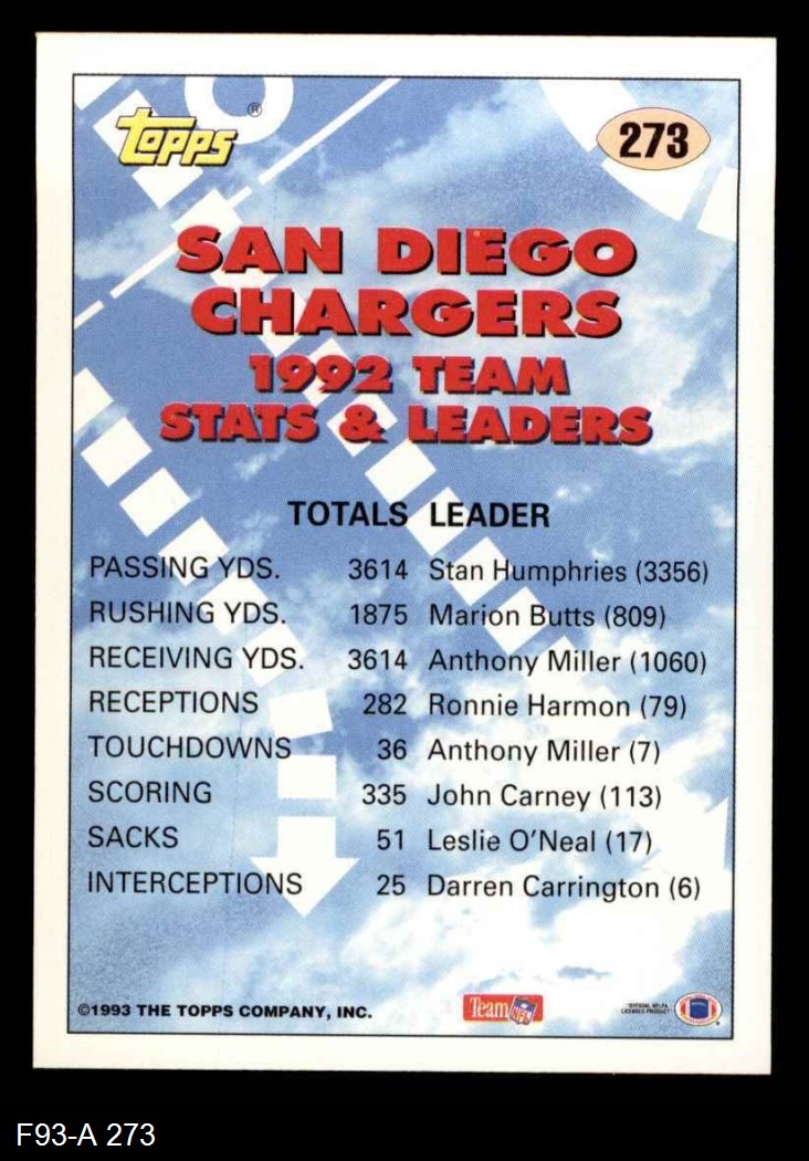 1993 Topps Football Cards (2,480 available)1993 Topps Chargers (148 available)