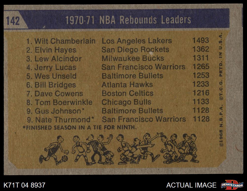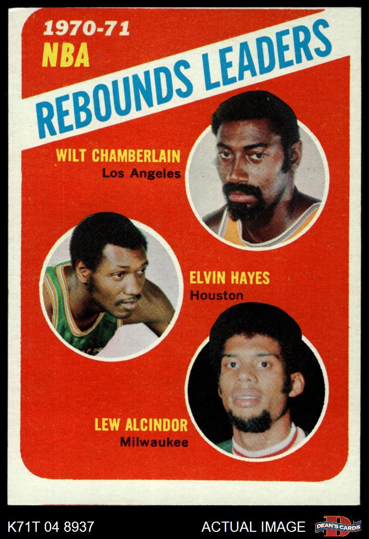 1971 Topps #142 - Lew Alcindor / Wilt Chamberlain / Elvin Hayes NBA Rebounds Leaders 3 - VG