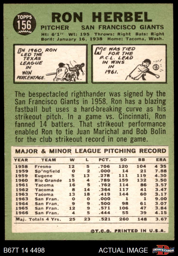 1967 Topps #156 Ron Herbel 4 - VG/EX